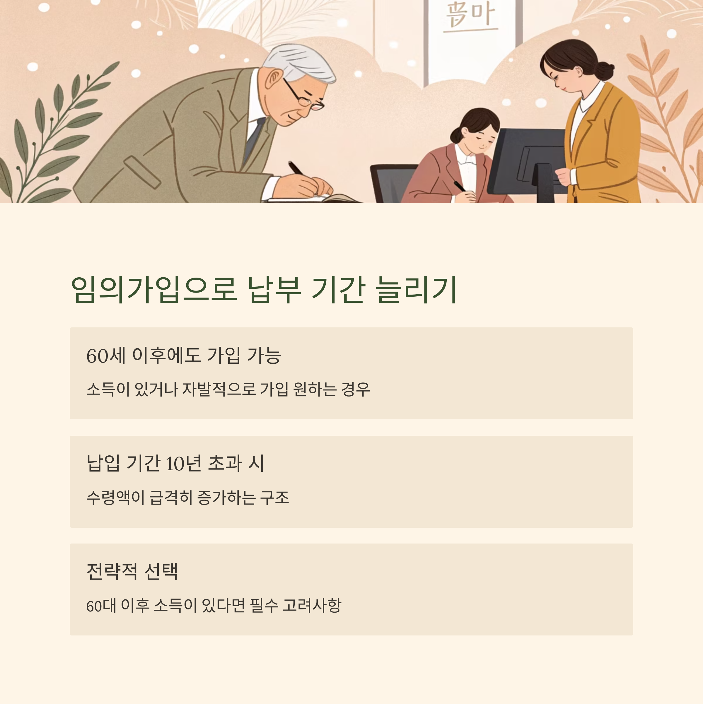 "60대 이후에도 소득이 있다면, 임의가입은 선택이 아닌 전략입니다"