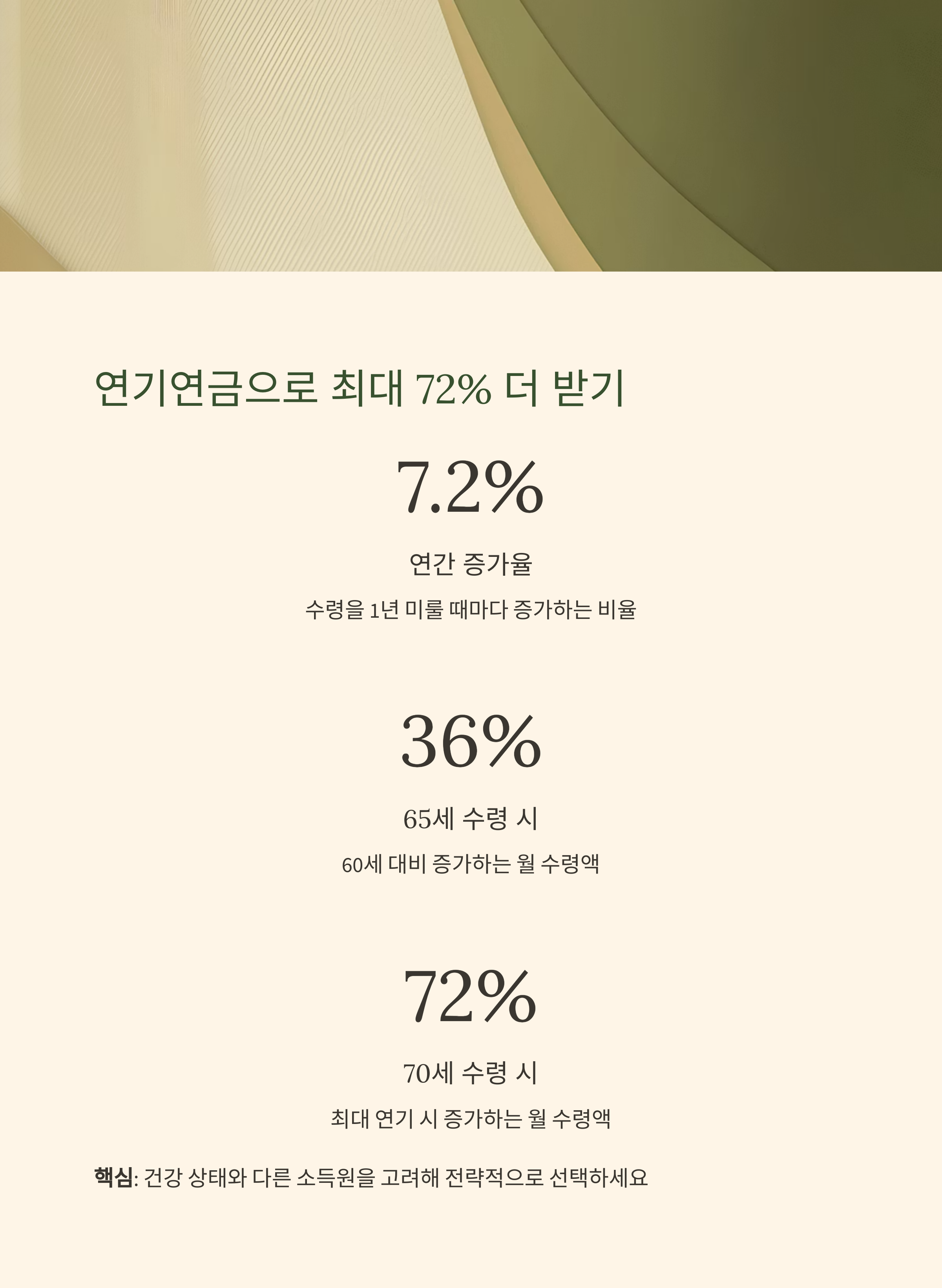 국민연금은 만 60세부터 수령 가능하지만, 최대 만 70세까지 수령을 미룰 수 있습니다